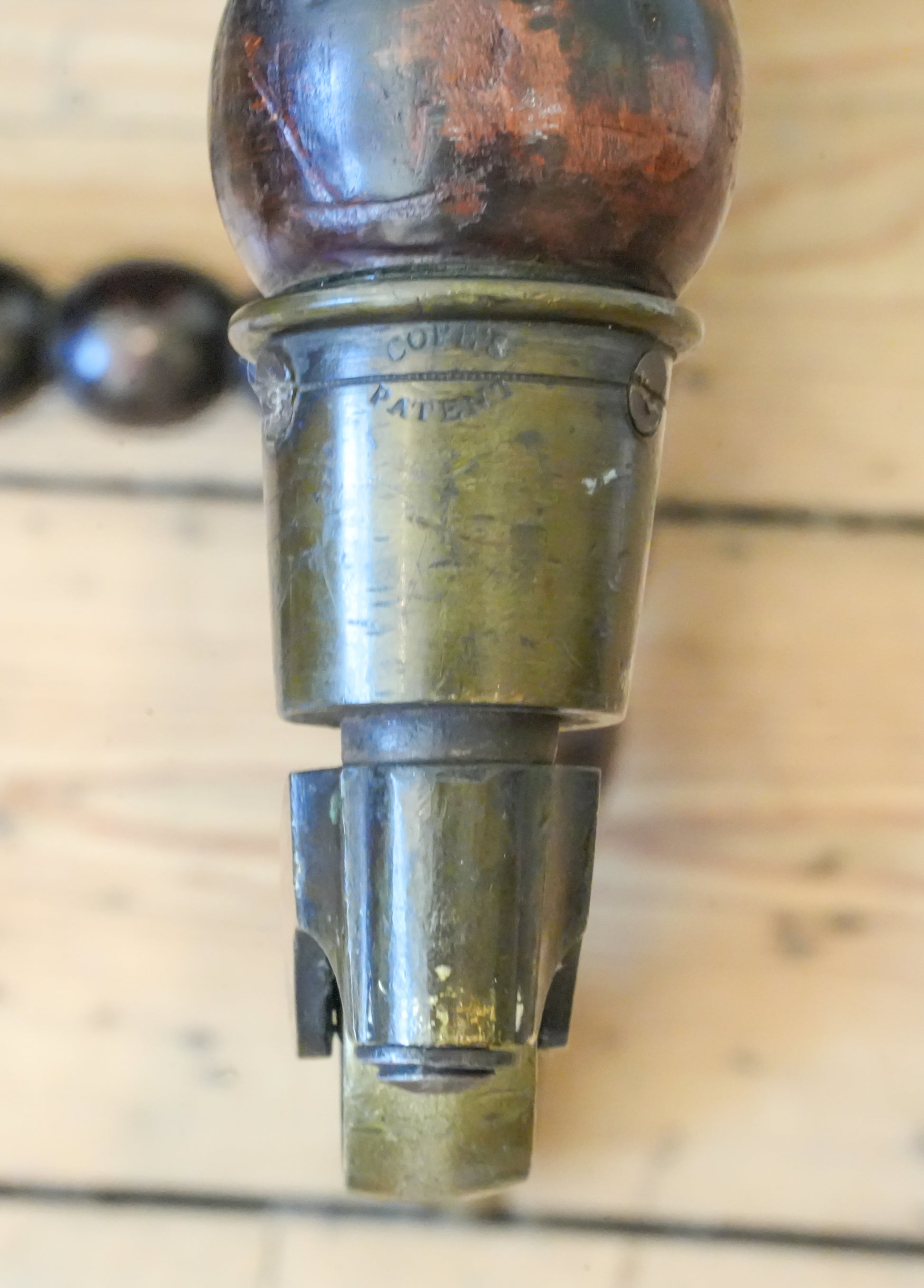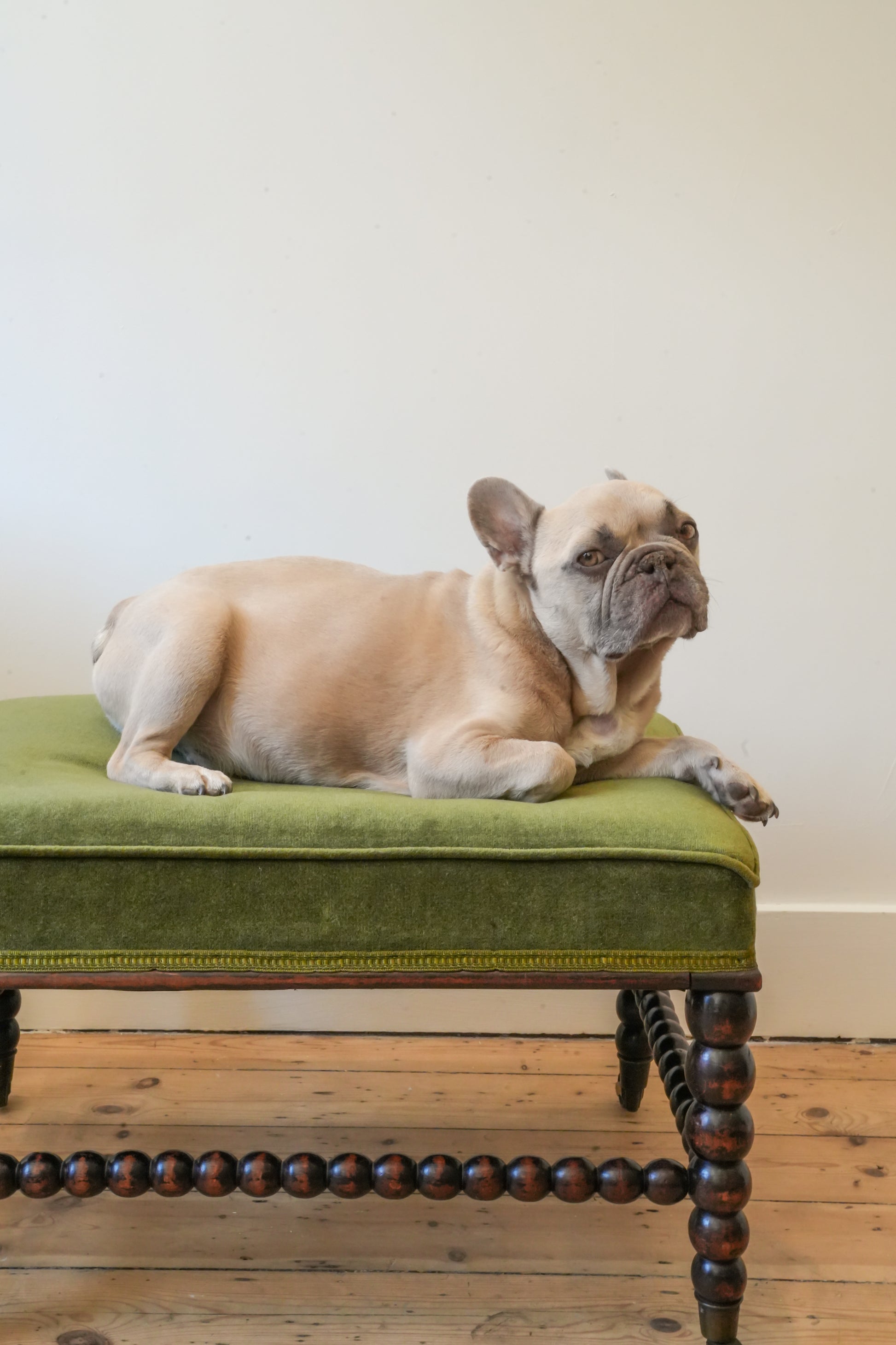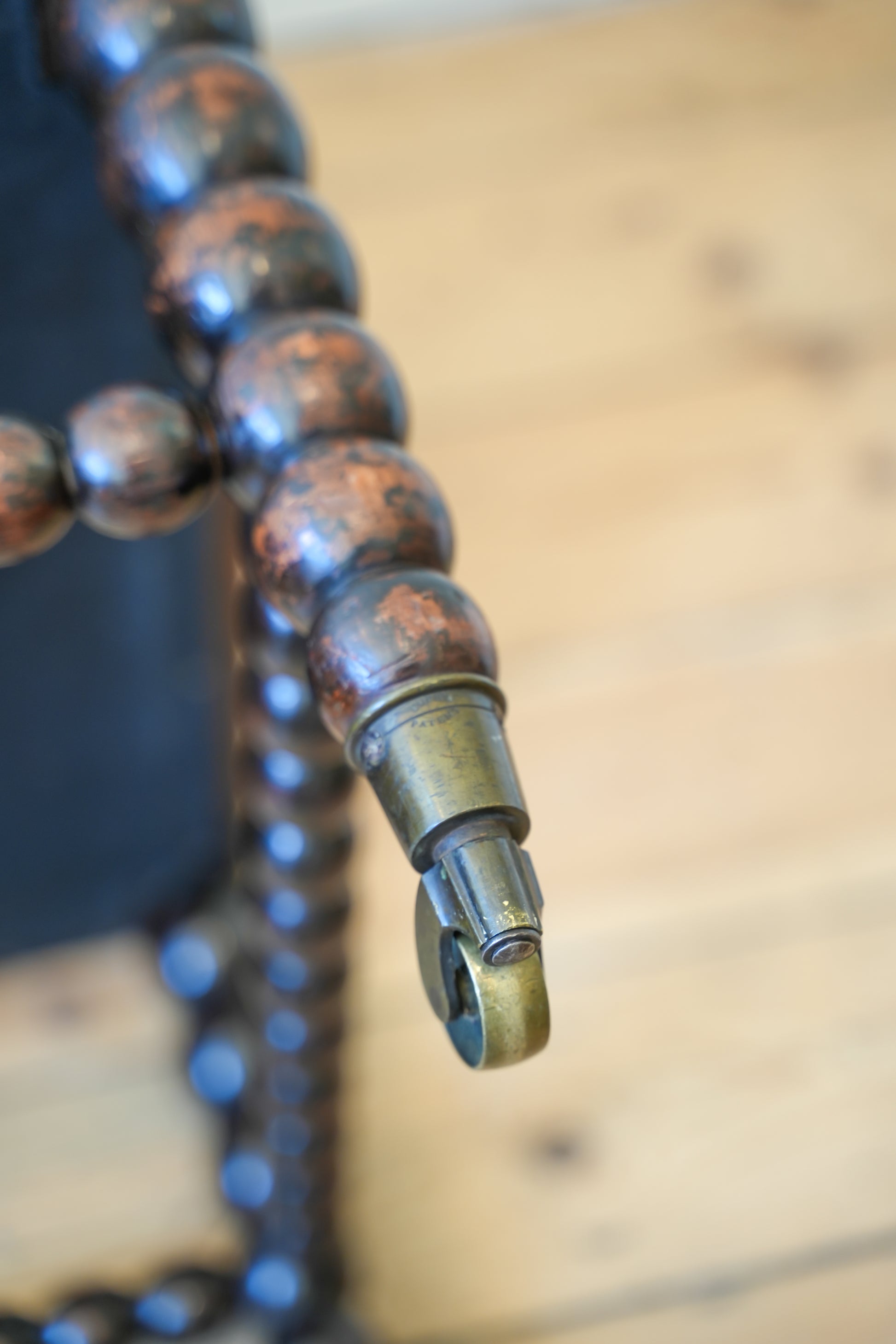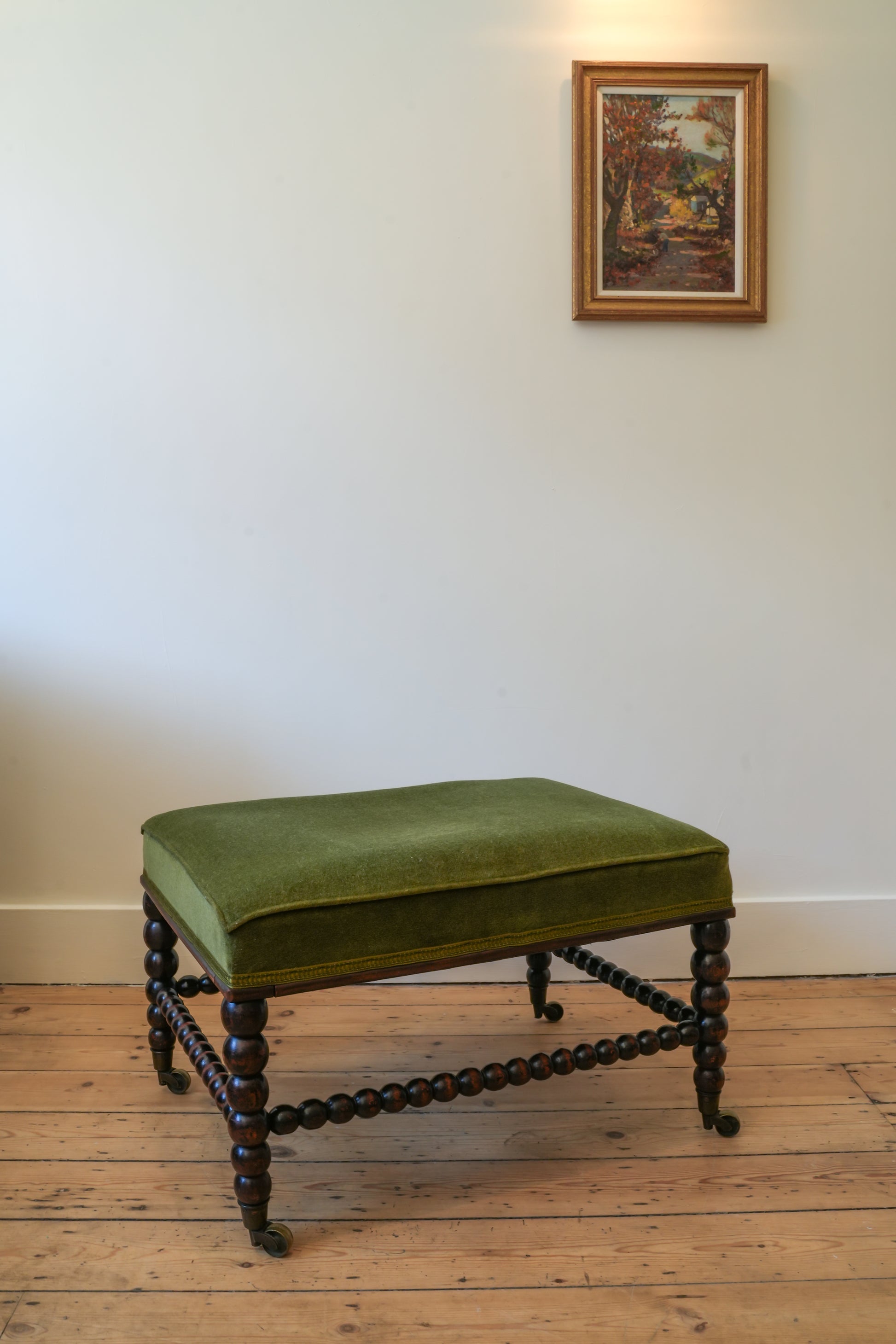 An early 19th century English footstool with bobbin turned legs, all adjoined by bobbin turned stretchers and with its original brass Copes Patent castors. Original horsehair seat with fabric that although is not newly done is in pretty good order and useable. We can of course have this reupholstered to a fabric of your choice if you wish, please enquire for a quote.